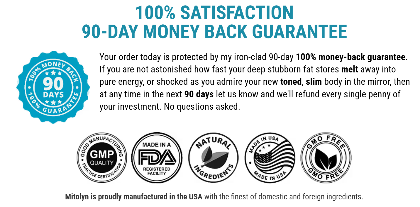 Every single bottle of Mitolyn comes with our personal 90-day 100% money back guarantee. If for any reason you’re unsatisfied with your results, just return all bottles (even if empty) for a full, no questions asked refund.
